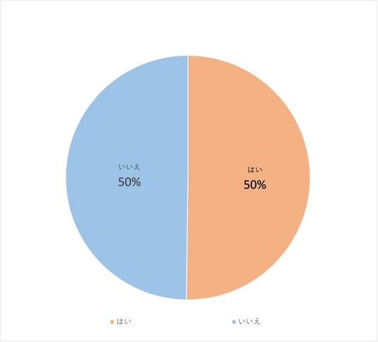 「Q4.車が欲しいと思うことはありますか?(n=1311)」という質問に対して、「はい」と「いいえ」の回答はちょうど50%ずつとなった。