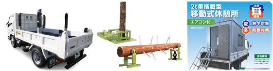 ■1.林業用車両(3tダンプ) ■2.林業研修用装置 ■3.移動式休憩所