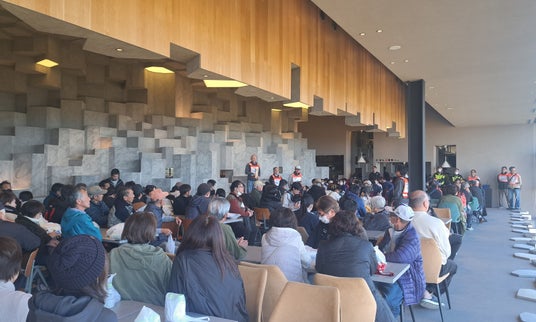 避難場所となるラウンジにて、近隣住民約140人が参加