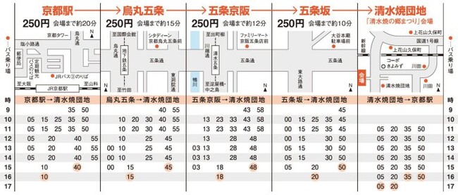 各線「京都駅」烏丸中央口JRバス3番乗り場~ 会場まで臨時直行便を運行(有料)