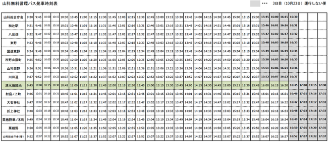 ※時刻表ピンクの●印の箇所は10月23日は運行なし