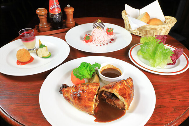 ビーフシチューパイ包み焼き ギネスビール使用したオニオンチリジャムを添えて
