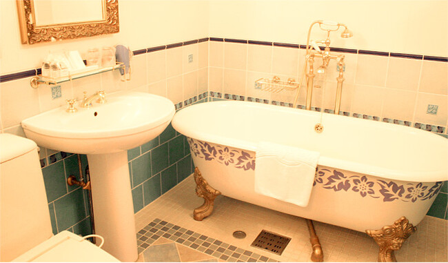 木造と漆喰を基調とした安らぎの空間。英国伝統様式のバスルーム(クラシックな猫脚のバスタブ)、凝った装飾の洗面台をご用意しております。中世英国の優雅な雰囲気の中で、ゆったりとした時間をお楽しみいただけます。