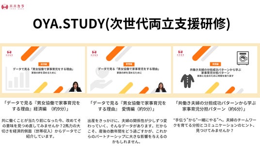 今回本実証(次世代両立支援研修)で提供したOYA.STUDY3コンテンツ