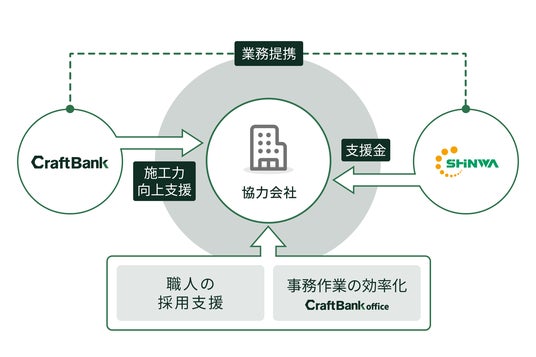 本取り組みは、建設業界において深刻化する職人不足に対し、当社が提供する業務支援ツール「クラフトバンクオフィス」と、これまで両者で培ってきた建設業特化型の採用ノウハウを活用し、協力会社の経営基盤と人材確保の両面を支援するものです。