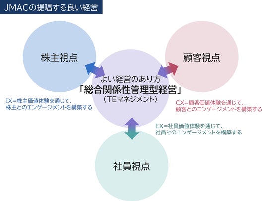 株式会社日本能率協会コンサルティング(以下、JMAC/本社:東京都港区・代表取締役社長:小澤勇夫)は、この度高度化する顧客・社員・株主の期待に応えるステークホルダーエンゲージメントのあり方を考える『総合関係性管理型経営(TEマネジメント)』※(以下、TEマネジメント)をリリースいたしました。