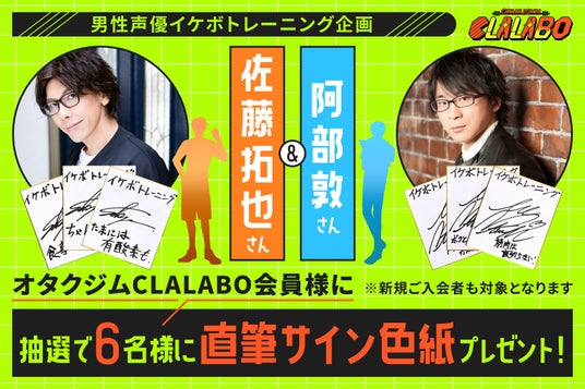 また、オタクジムCLALABO会員様用にも感謝を込めて、佐藤拓也さん&阿部敦さんの直筆サイン色紙プレゼントキャンペーンも実施中です。