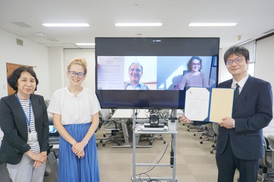 2024年6月25日(火)日本時間の9時30分からオンラインで署名式が行われ、ダグラスカレッジ 副学長 Leonel Roldan-Flores教授が「両大学の研究と学生交流を深め、今夏開始の多文化共生プログラムで神戸女子大学の学生を受入れることを楽しみにしている。」と述べられました。 神戸女子大学 栗原伸公学長は、「両大学の友好的な交流関係が長く継続することと、優れた研究活動が学生の教育に貢献することを望みます」と述べ、共同で協定書に署名しました。