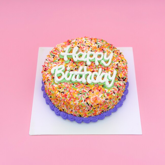 カラフルなチョコスプレーが全面にまぶされた、アメリカンPOPなデザインです。パーティーをちょっぴり派手に演出してくれます。