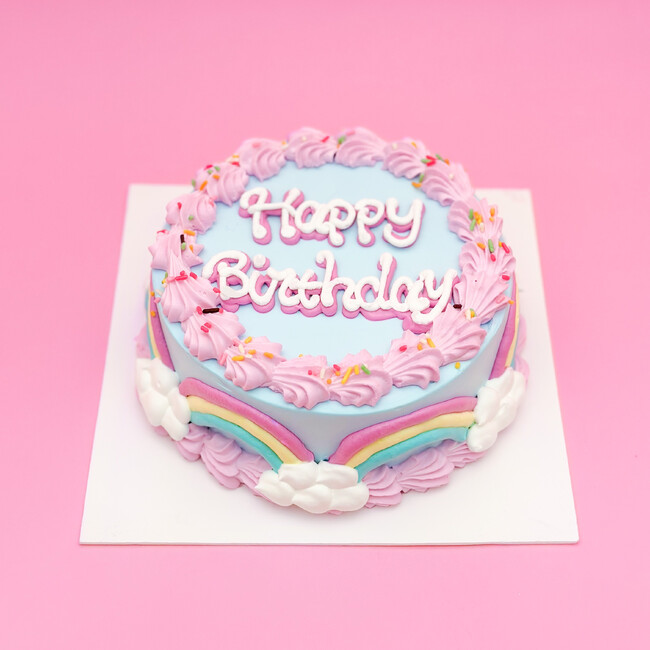 見ているだけでハッピーに! 虹がかかったファンシーかわいいケーキです(ハート)