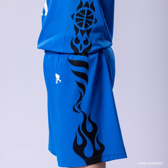 トップスの側面には、バスケットボールを中心に広がるエネルギーの紋様を描き、島根スサノオマジックがチーム名の通り、日常を変えるような魔法の力で、スサノオファミリーの皆さまにとって、非日常の世界を生み出す存在でありたいという想いを込めました。