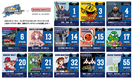 さらに今シーズンより、バンダイナムコエンターテインメントを代表する人気キャラクター達が各選手を応援します。