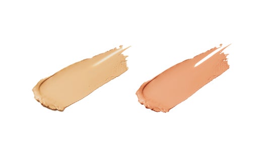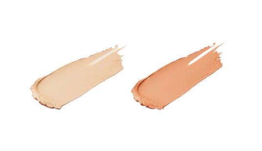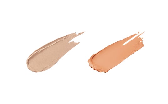 目のクマ部分をカバーするオレンジと、肌の気になる部分をカバーするスキンカラーの2色セット。目の下にオレンジを入れることで、クマを隠して表情をパッと明るく。部分的にスキンカラーでカバーすることで、立体感を与えながら抜け感のある肌を演出します。