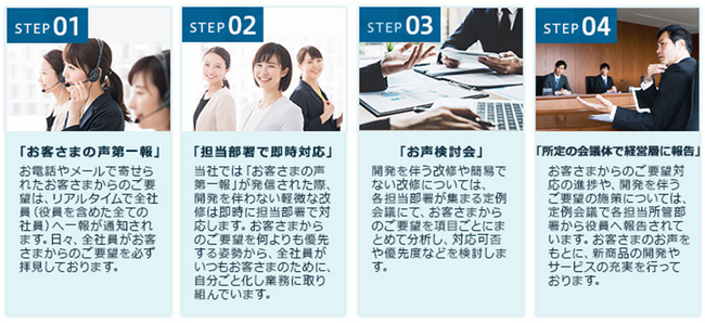 また、お客さまからいただいたご意見やご要望を「お客さまの声」と呼び、日々の改善活動を行ってきたことや、お客さまが困った際にご利用いただく「お客さまサポート」ページをより使いやすく、よりわかりやすく改修を行ってまいりました。