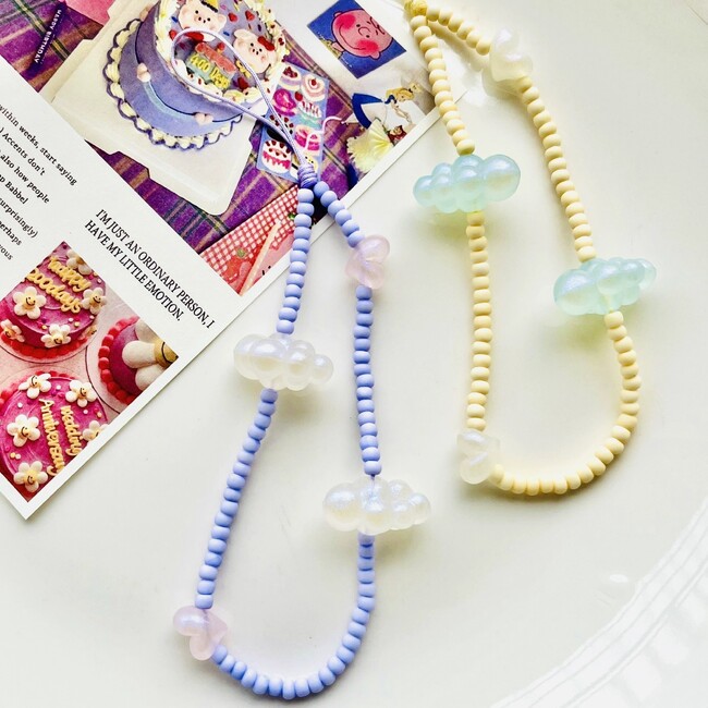 3.「夏空と一緒に」雲とハートのビーズストラップ 各 2,200円(税込)