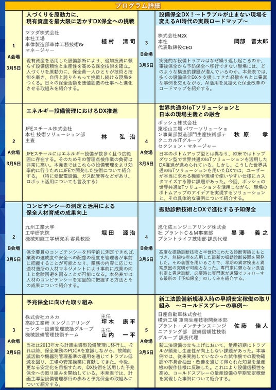 また、昨年大好評であった、企画委員会によるパネルディスカッションも開催いたします。ぜひ、設備管理の今(考え方・取り組み・これからの将来像)を考える機会にしてください。