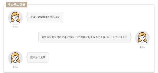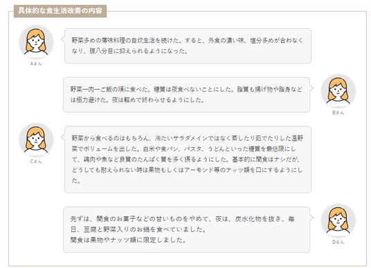 さらに詳しく調査をしたところ、具体的な食事改善の例として「野菜から食べる」「野菜の量を増やす」という方が多く見られました!