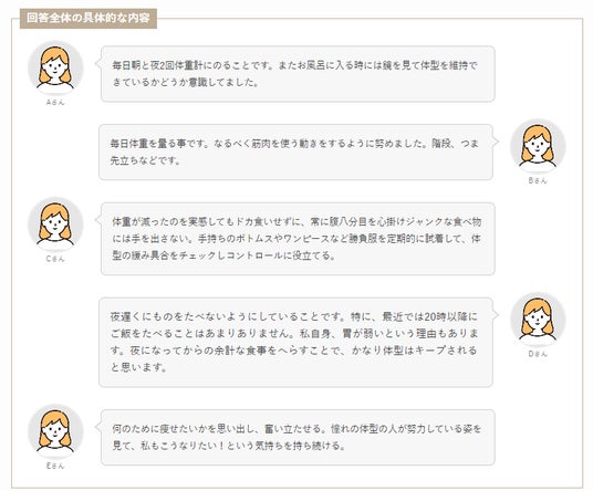 また興味深いのは、体重やサイズの変化だけでなく、肌の調子や体調・気分の改善を挙げた方がいたことです。