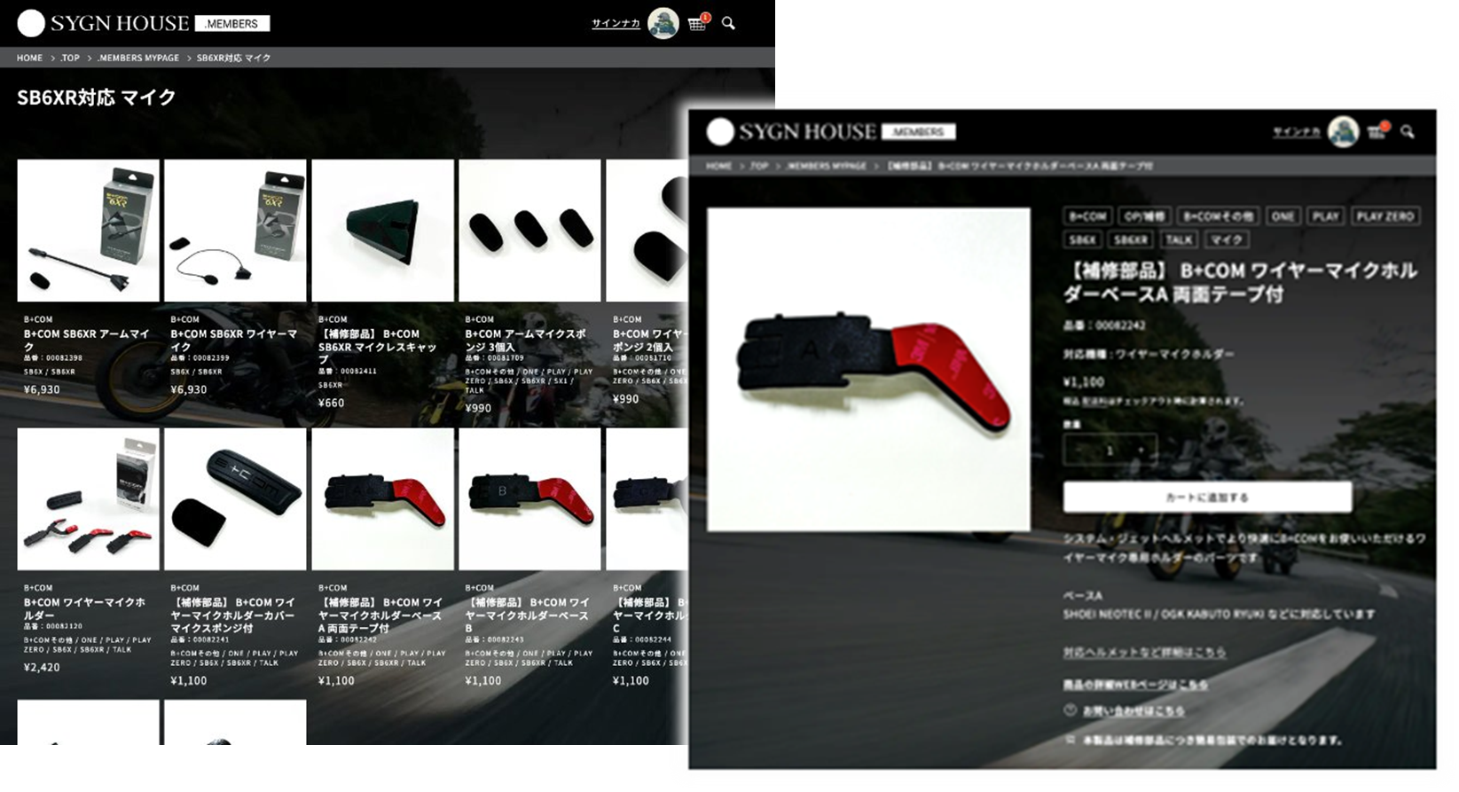 3.パーツショップ(会員限定):付属品やオプション品、補修部品をオンラインで購入できます。購入費用5,000円以上(税込)で送料無料です。決済方法は、クレジットカードおよび代引き予定です。※B+COM製品のみの販売。