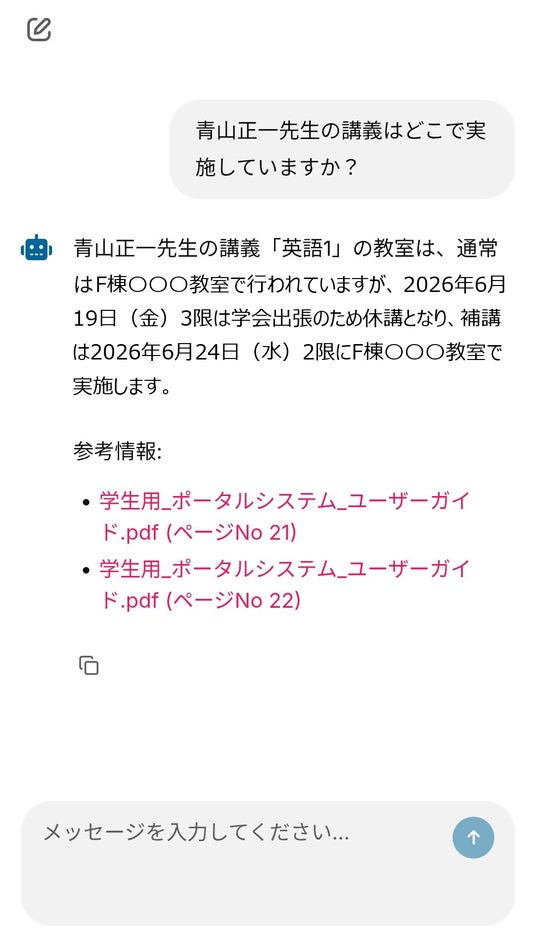 大和大学は、常に新たな取り組みを積極的に推進し、大学価値の向上を目指しています。2024年4月には、全国に先駆けてデジタル学生証を導入。独自アプリによる出席管理や、QRコードを用いた図書館入館・貸出システムを採用するなど、DX化を加速させています。今回こうした取り組みをさらに発展させるため、新たに大学ポータルシステム上で動作するAIチャットボットサービスの導入に向け、実証実験を開始することとなりました。