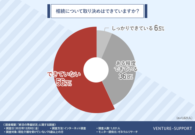 「相続について取り決めはできていますか?」と質問したところ、半数以上が「できていない(56.7%)」という結果になった。