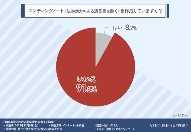 介護を受けていない70歳以上の男女の91.8%が、「エンディングノートを作成していない」と回答