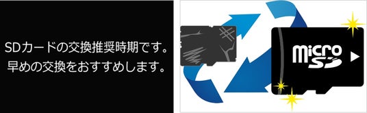起動時にSDカードの状態を確認し、交換推奨時期に近づくと画面表示とブザー音でお知らせします。