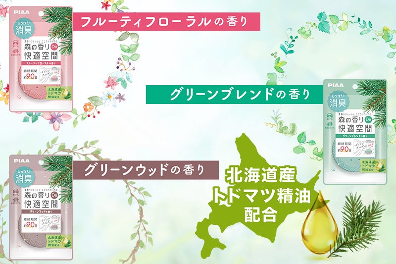 PIAA(ピア)株式会社(本社:東京都文京区、代表取締役社長:寺田 浩康)は、車のドリンクホルダーの底に入れるだけの消臭・芳香剤 『森の香り De 快適空間』 (読み:モリノカオリデカイテキクウカン)の新シリーズを3種の香り、カラーで新発売します。2026年3月より販売開始。