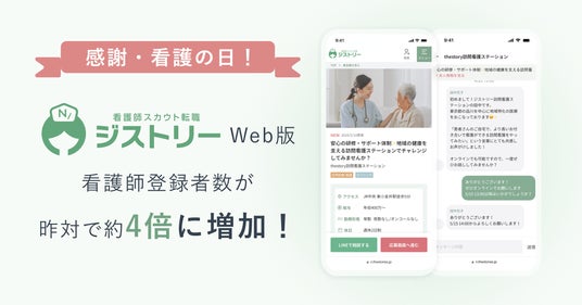 看護師スカウト転職「ジストリー」を運営する株式会社thestory(ジストリー)(本社:福岡県糸島市、代表:河京子)は、「ジストリー」Web版が2024年5月のサービス開始から約一年経過し、看護師の登録者数が大きく増加したことをお知らせいたします。