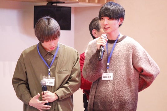さらに、異なる大学に通いながら共に事業の準備に勤しんできた会津大学所属の谷川 直弥さんと慶應義塾大学所属の桑田 翔平さんのコンビが最終発表者として登壇。「カップル支援のアプリ開発と運用」をテーマに計画してきた事業内容の発表を行いました。桑田さんは「中間、そして今回の最終報告とプロジェクト全体を通じて、区切りがあることで、事業の準備をしていくにあたってのメリハリがついたのが良かったと思います。あとは、ビジネスの最前線でご活躍されている経営者の方々、他大学の学生とのコミュニティを構築することができ嬉しく思っています。」とコメント。また、今後の意気込みを谷川さんに伺うと「バズを生み出せるプロダクトとして、アプリを成長させていきたいです。僕たちは、アプリに対して利便性のみならず、“楽しさ“も重視し開発を行なっています。あらゆる方に楽しんでもらい、そして愛されるアプリになれるよう頑張っていきたいと思います。」と今後の展望をお話しされました。