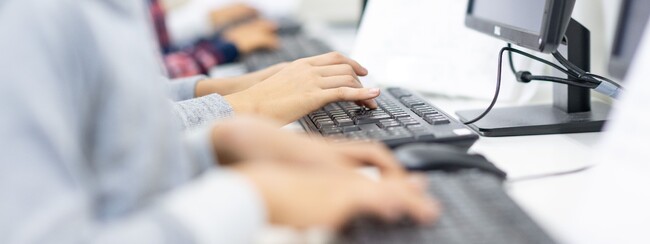 アクティメソッドは短時間で英単語を大量にインプットする学習法が強みで、一般的な英語の「ライティング」は全てタイピングで実施します。英単語を手元のキーボードでタイピングし、語彙力を育成します。音声が流れ英単語をタイピングしてスペルを覚えるので、正しい発音とセットでの練習が可能になっています。