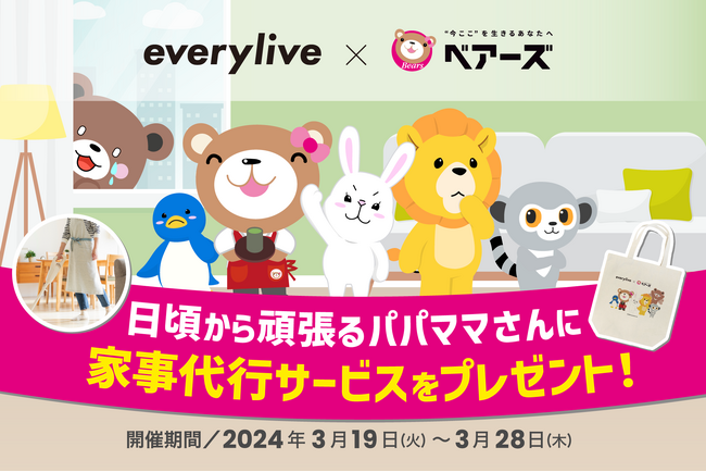 この度、エブリライブは家事代行サービス「ベアーズ」とのコラボレーションが決定しました。