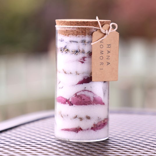 花の森で育ったばらとローズマリーを使ったポプリの制作体験です。フレッシュな花材と塩を重ね、おうちで1ヶ月じっくり熟成させて完成です。香りが長期間持続します。