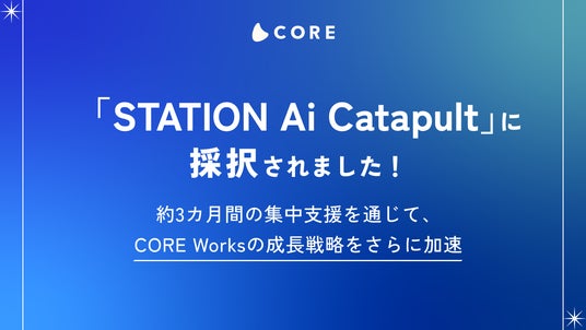 株式会社CORE(本社:東京都、代表取締役:尾崎莉緒、以下「CORE」)は、ソフトバンク株式会社の子会社であるSTATION Ai株式会社(本社:名古屋市昭和区、代表取締役社長 兼 CEO:佐橋宏隆)が主催する、創業前後からシートステージのスタートアップを対象にした短期集中型支援プログラム「STATION Ai Catapult」8th Batch(第8期)に採択されたことをお知らせします。