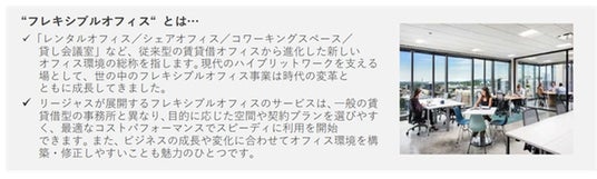 洗練された空間を提供する大人のコワーキング「Signature(シグネチャー)」、創造的なコラボレーションを実現する「SPACES(スペーシズ)」、 上質なワークスペース、多彩なロケーション、柔軟なプランを提供する「Regus(リージャス)」、働くをもっとシンプルにを目指したコンパクトで機能的な「Openoffice(オープンオフィス)」の4つのブランドを運営することで、多様なお客様のニーズにフィットするフレキシブルオフィスソリューションを提供しています。