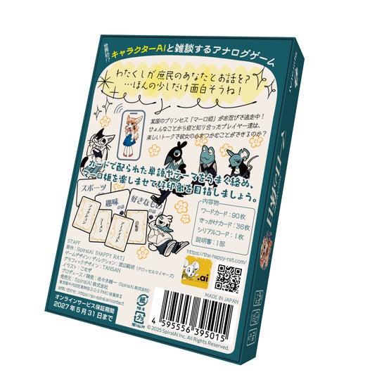 大規模言語モデルなどのAI技術を用いたサービスを開発するSpiralAI株式会社(本社:東京都千代田区、代表取締役:佐々木雄一、以下「SpiralAI」)は、リアルタイムで会話を楽しめる新作アナログゲーム『マーロの休日』を、2025年5月17日(土)・18日(日)に開催される「ゲームマーケット2025春」にて先行販売いたします。一般販売は5月29日(木)より開始予定です。