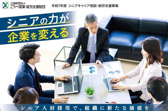 (公財)こうべ産業・就労支援財団では、人材不足の課題を抱えながらもシニア雇用に不安のある神戸市内企業に対してサポートを実施するとともに、シニア世代・プレシニア世代の就労のための個別キャリアカウンセリング等を通じて就労意欲の向上を図り、企業とシニア等とのマッチングを行う「シニアキャリア相談・就労支援事業」をスタートします。