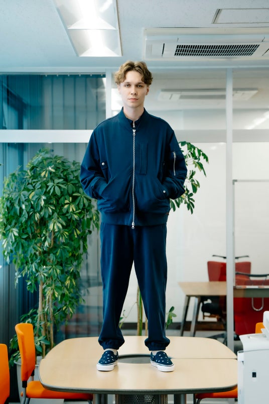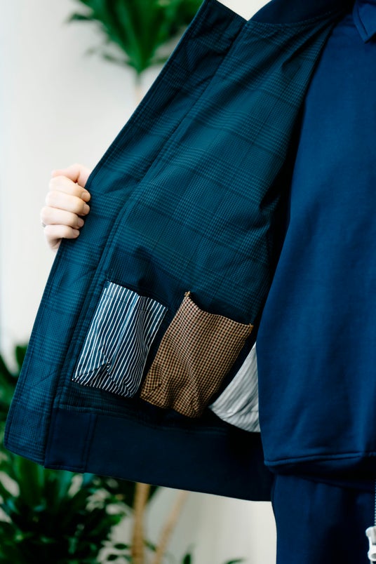 今回のコレクションは、ストリートファッションの根底にあるドレスダウン。王道のスタイルのルールにとらわれず、パンクスピリットを1つのキーワードにカタチにしたコレクションです。その流れのベースとなっているのは、やはり、90年代の東京ストリートにあり、本来ならナイロン素材で作られているMA-1フライトジャケットをスエット素材に、色々なディテールや柄をMIXし、グレンチェクやネイビーやグレーという落ち着いた外観とは裏腹に、そのスタイルの背景にあるカルチャーを感じてもらえたらという内に秘めた願いが、デザインで表現したラインナップになっていると思います。