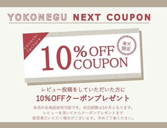 さらにレビュー投稿頂けると次回使用可能な10%OFFクーポンも獲得できます。