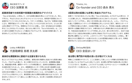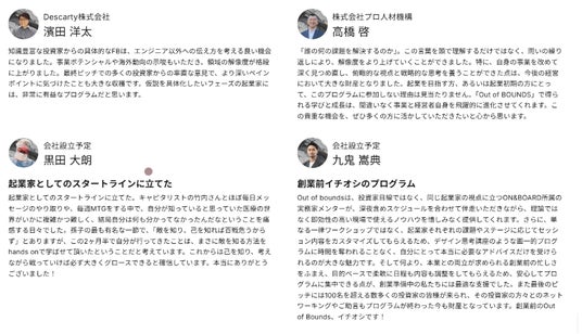また、過去の参加者からも、続々と資金調達に成功する起業家が誕生しており、「結果が出る創業支援プログラム」としてご好評いただいております。