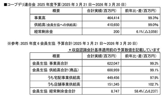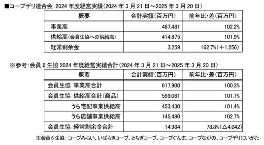 コープデリ生活協同組合連合会(略称:コープデリ連合会、代表理事理事長:熊崎 伸、本部:埼玉県さいたま市、 会員生協:関東信越6生協)は、6月14日(土)に第34回通常総会を開催し、2024年度事業報告承認の件、2025 年度事業計画・予算設定の件、役員選任の件の3つの議案が賛成多数で承認可決されました。 2024年度の経営実績および、2025年度の予算の概要をご報告します。