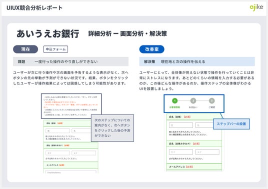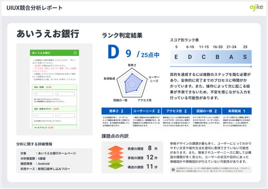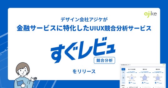 UXコンサルティング、事業デザイン、UI/UX改善などを手がけるサービスデザイン会社の株式会社アジケ(本社:東京都目黒区、代表取締役:梅本周作、以下:「アジケ」)が金融・銀行サービスに特化したUIUX競合分析サービス「すぐレビュ競合分析」を2024年10月よりリリースいたします。