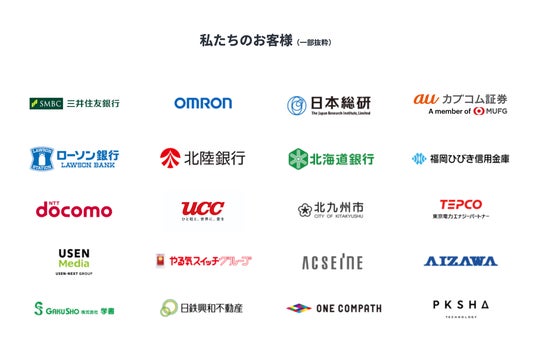 アジケは金融機関を中心に製造、通信など幅広い業界のお客様の、サービス設計、UI/UXデザイン、新規事業開発など様々なプロジェクトを支援しています。