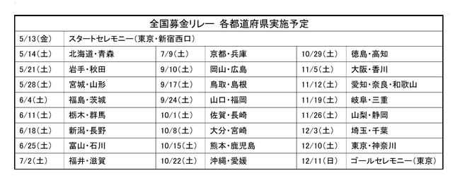 5月13日(金)には東京・新宿で「全国募金リレー」のスタートセレモニーを行います。セレモニー後には街頭募金もおこない、交通ICカードでのご寄付も受け付けます。