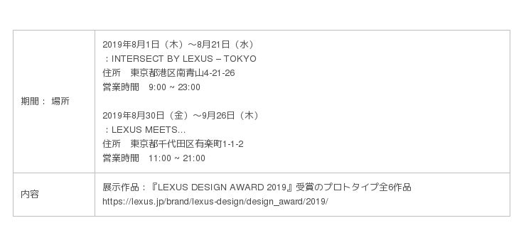 LEXUS DESIGN AWARD 2019 凱旋展示概要