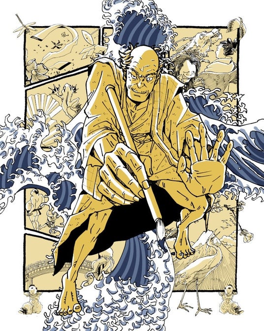 第一弾は「オマージュ北斎」。浮世絵、漫画、挿絵とあらゆる分野の第一線で活躍した日本を象徴する絵師・葛飾北斎にインスパイアされ、画家、漫画家、イラストレーターという3つの異なるジャンルの15名のクリエイターが新作を発表。全23点をWEBサイト「月刊美術プラス」にて販売します。