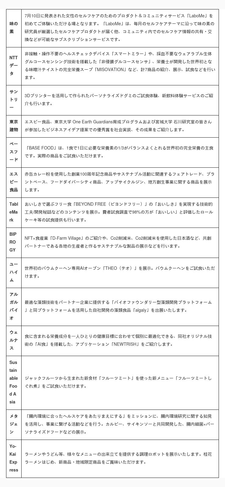 “UNLOCK(アンロック)”を体現する食のイノベーター約90名が登壇し約40のセッションを開催 食の最先端技術を体感できる20件超の展示を実施