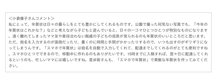 ■小倉優子さんも「スマホで年賀状」に太鼓判!WEB CMとインタビュー動画を公開!