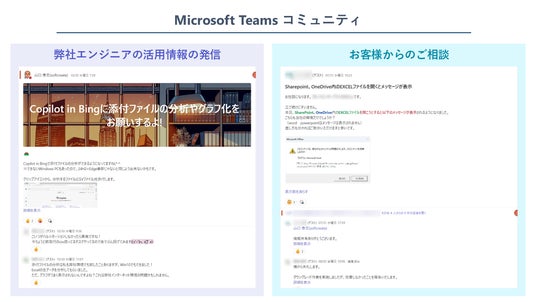 Microsoft Teams コミュニティ、会員限定セミナーや体験型ワークショップを通じて、Microsoft Copilot に関する最新情報や Microsoft 365 の運用ノウハウを共有し、お客様の Microsoft 365 の利活用を支援します。