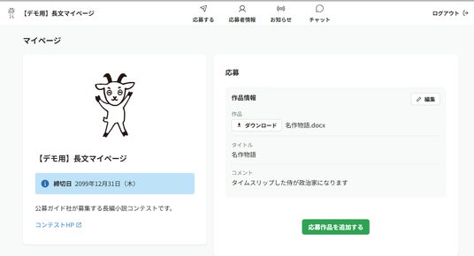 マイページ機能では、主催者から応募者へのお知らせ機能やチャット機能も完備。
